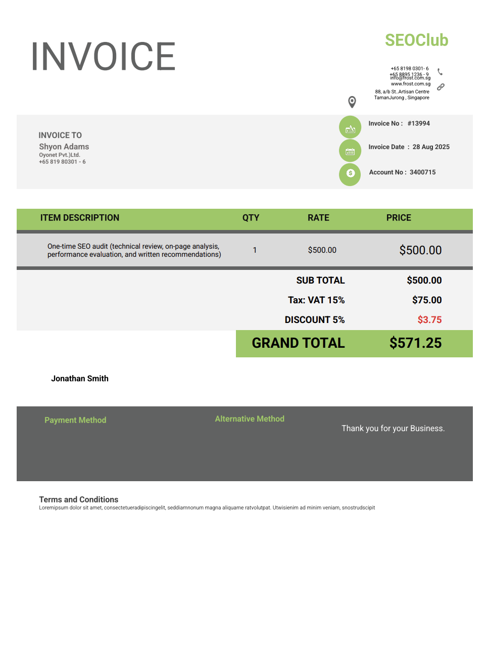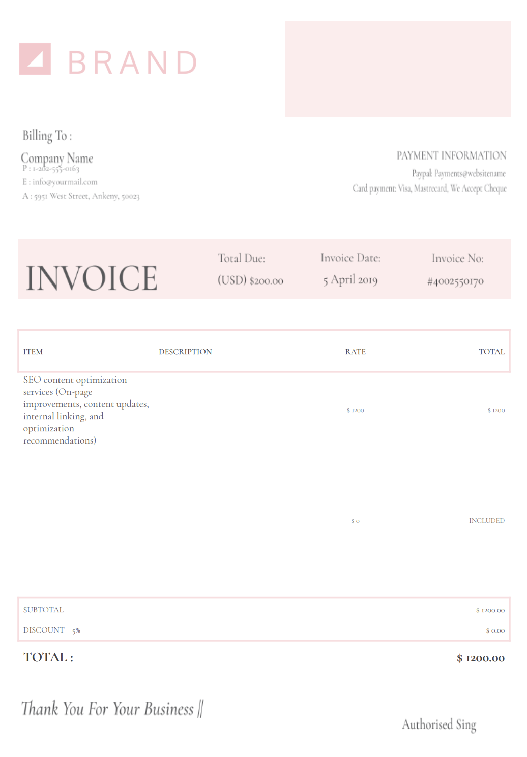 SEO is not a one-time deliverable. A well-organized invoice demonstartes that you’re providing expertise, consistency, and long-term value, not just chasing rankings.